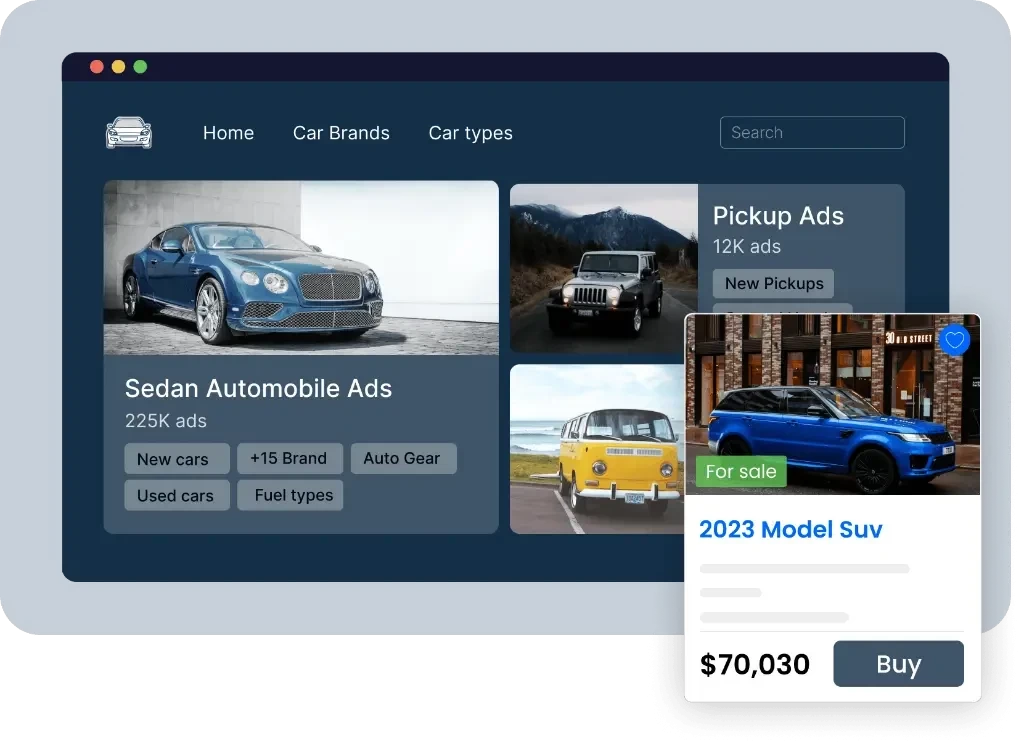 Sadece araçlar için özel bir tema. Her türlü aracı detaylı görsel ve videolarla satılık ya da kiralık olarak sunabileceğiniz, otomobil sitesi görünümü ile kullanıcının aracı satmasını kolaylaştıracak ArabaX Temasını hemen edinin.